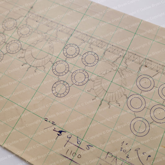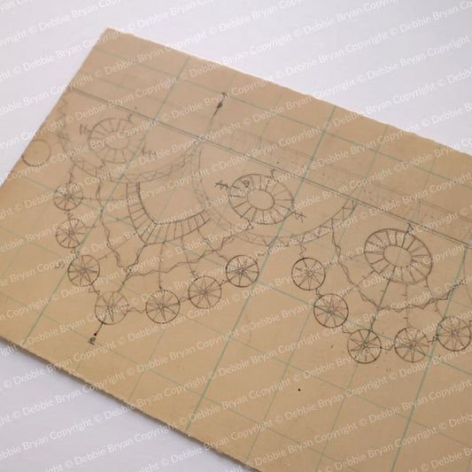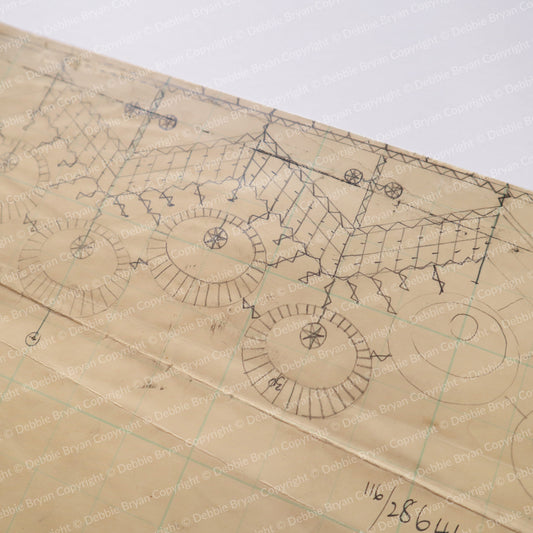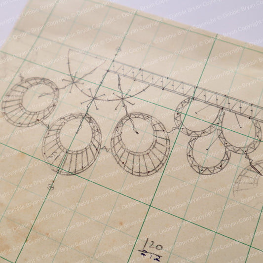 A collection of original hand drawn technical drawings, Nottingham Lace machine punch cards, heritage craft kits, Cluny Lace fabric and trims, hand crafted limited edition ceramics and exclusive lace inspired jewellery by Metalsmith Melissa Montague.