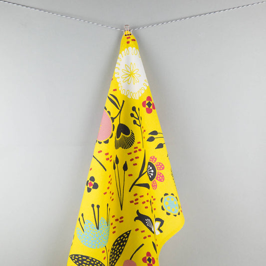Maggiemagoo Designs Yellow Floral Tea Towel