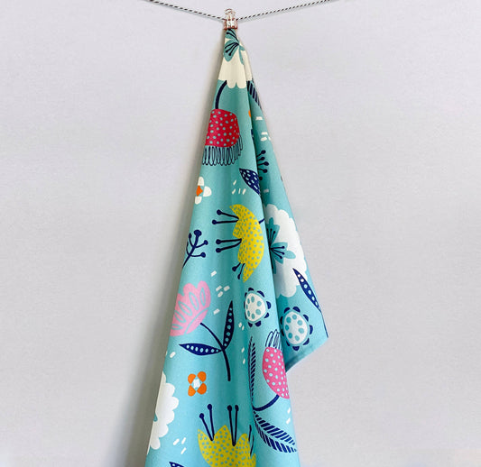 Maggiemagoo Designs Aqua Floral Tea Towel