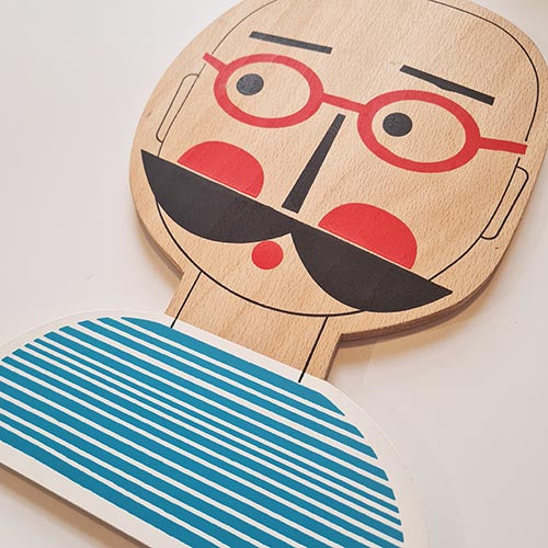 Mr Moustache is a hand-screen printed wooden wall plaque. Made of Plywood and complete with hook attached at the back so you can mount it to a wall.