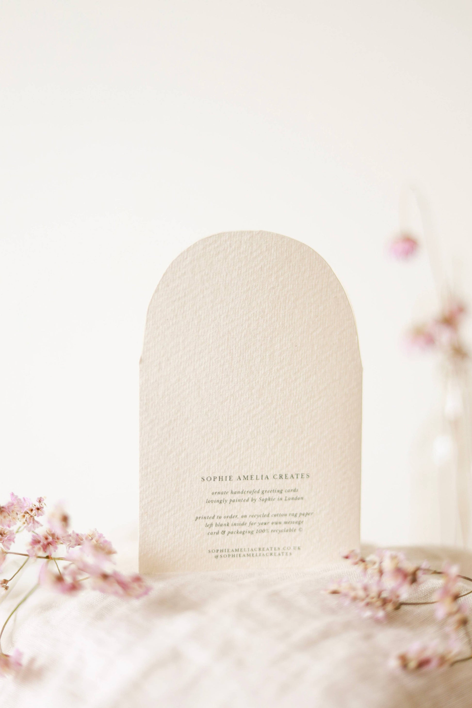 Luxury Chantilly white envelope included, bound with a paper band. Zero plastic & 100% recyclable. Card sold individually.
