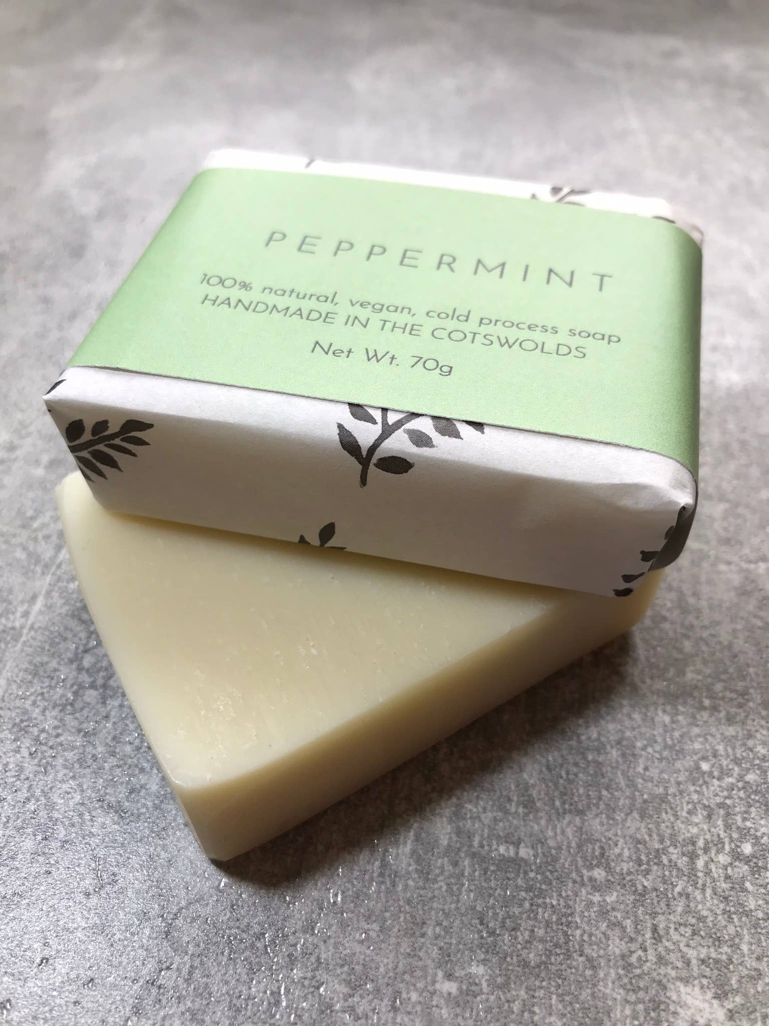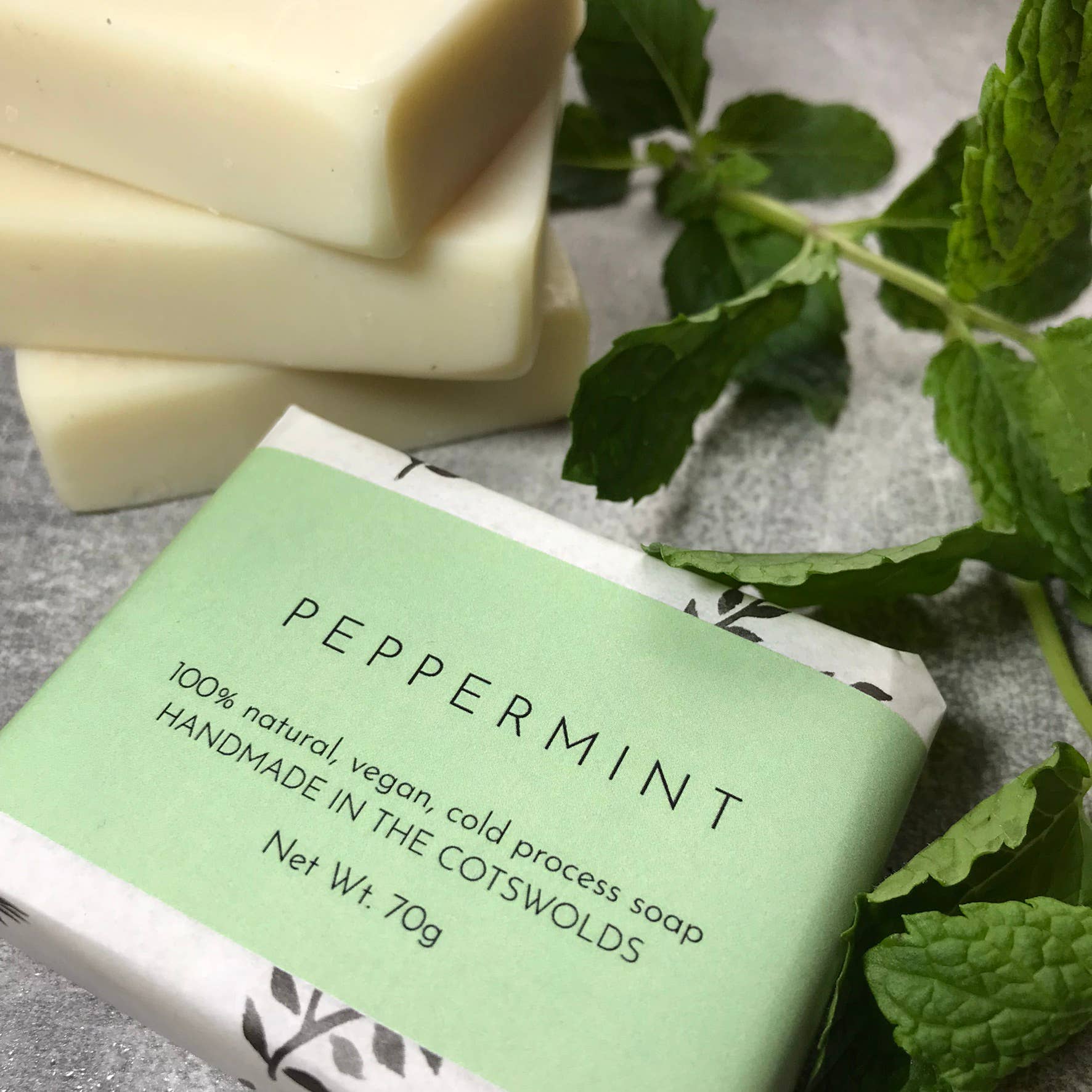 We use coconut oil for firmness and lather and a generous helping of shea butter to create a gentler bar. For scent we only use essential oils. Peppermint is an uplifting and refreshing scent and is naturally antimicrobial.