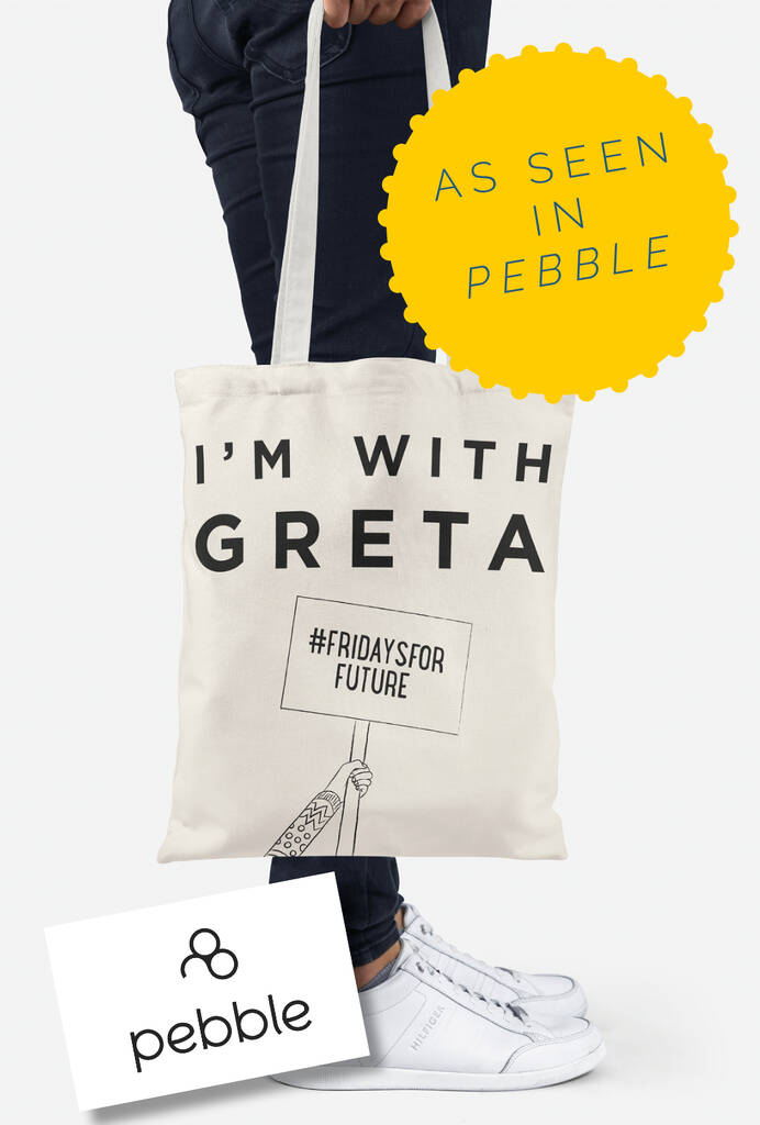 I'm With Greta! Support Greta Thunberg's climate justice strikes and #Fridaysforfuture with this 100% recycled tote bag. She is on a mission to get people in power to act on climate change. She is a legend. And I salute her!