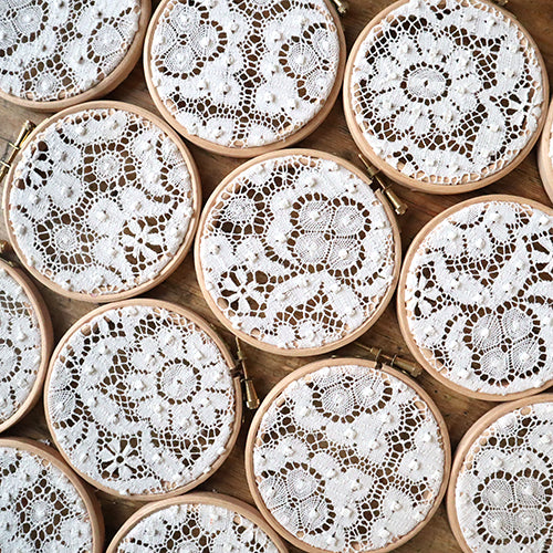 Spot wash or remove Nottingham Lace from hoop to hand wash in cold water and lay flat to dry