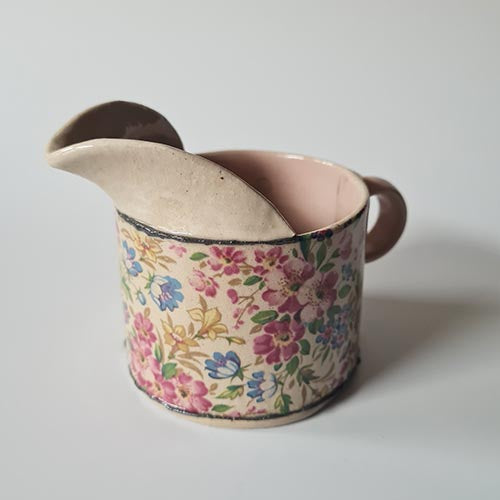 Floral transfers, metallic lustres and found objects are the finishing touches to create eclectic pieces that are precious and collectable yet ordinary and familiar."