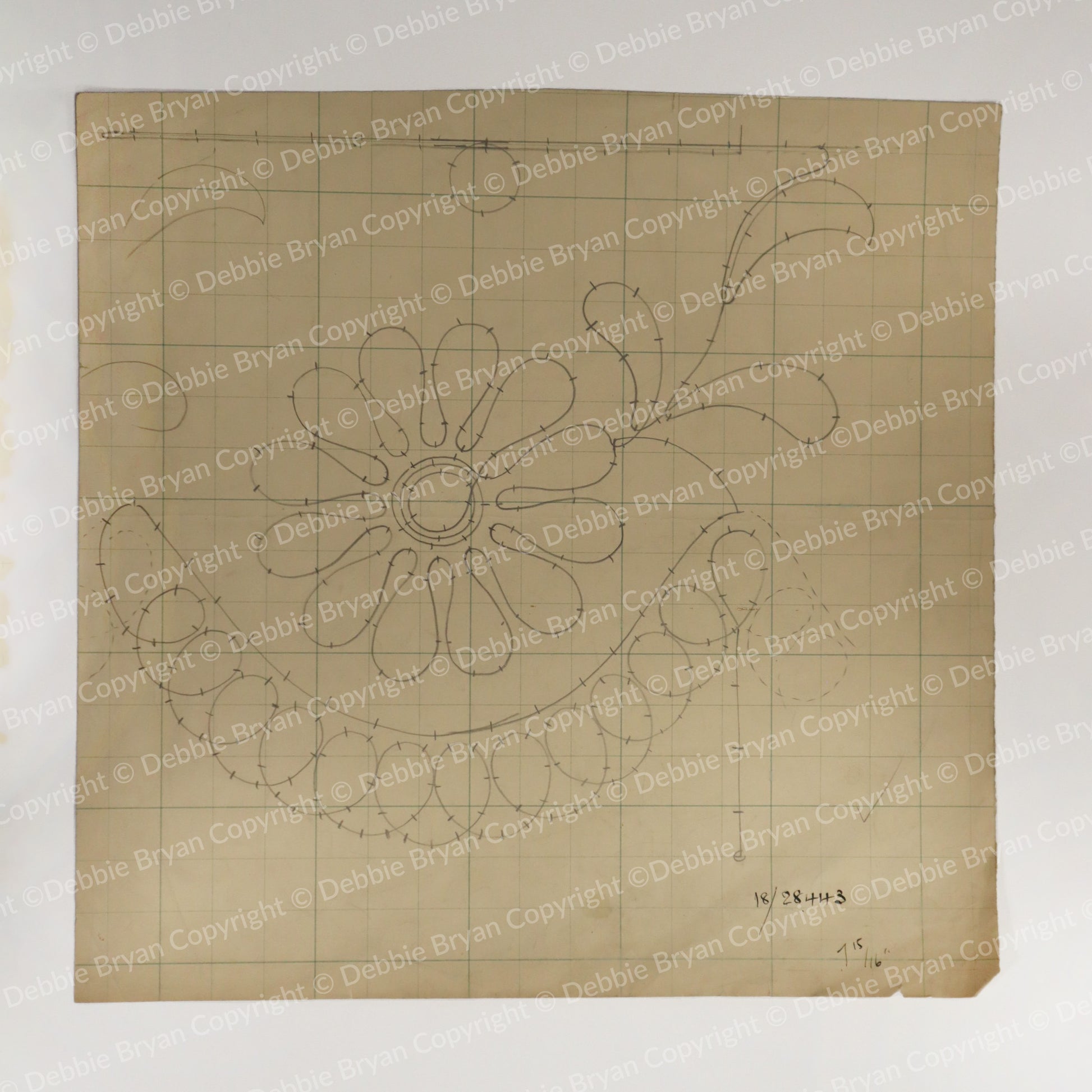 A unique flower and leaf design - Nottingham Lace drawing with original design and notes.