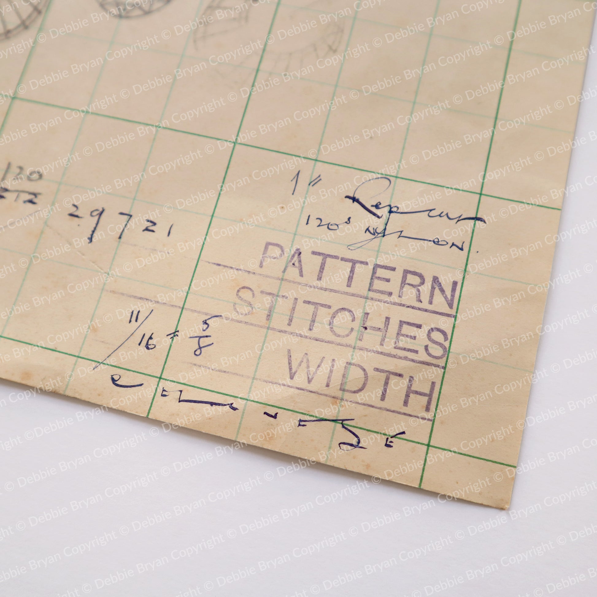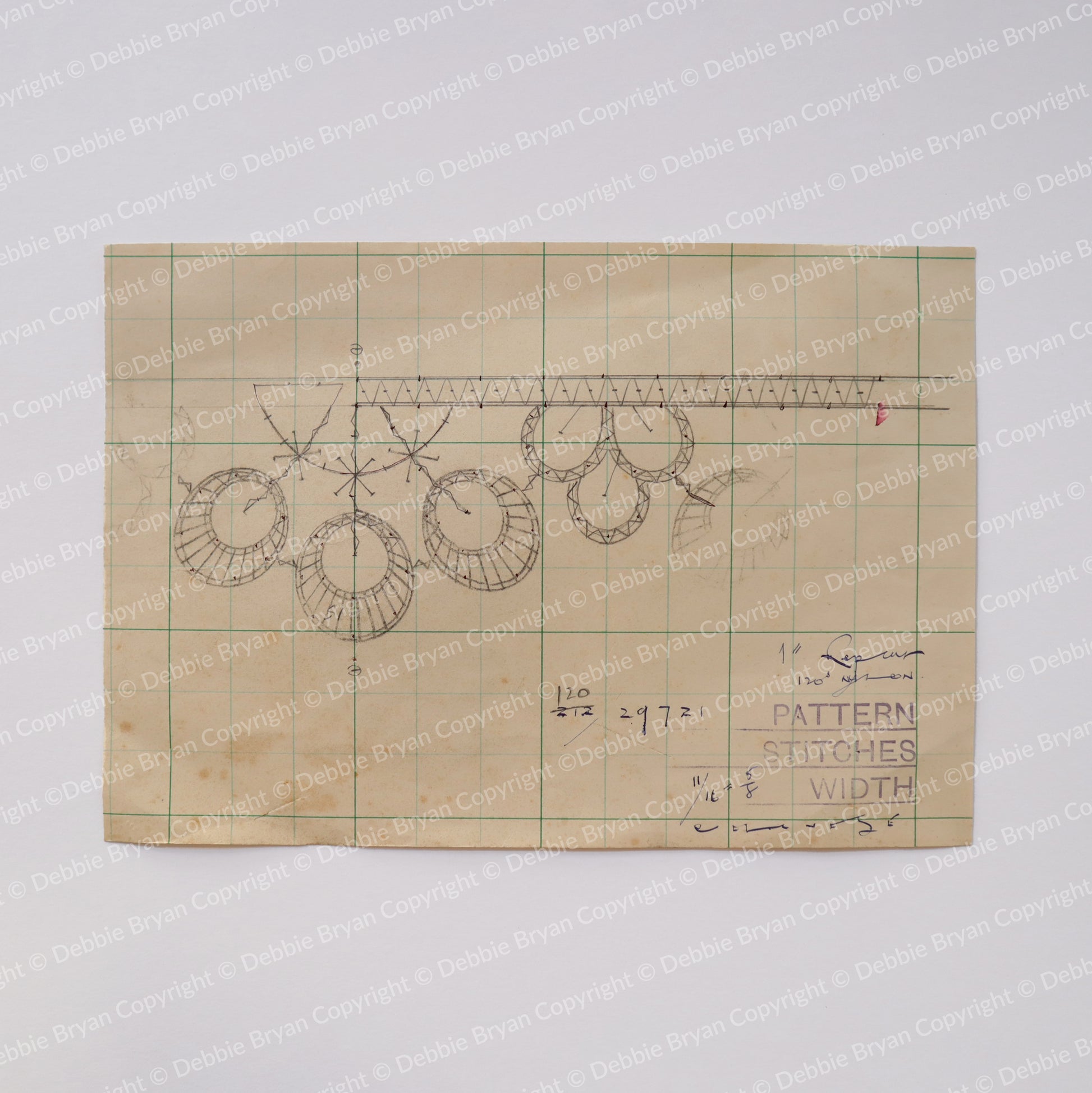 Nottingham Lace drawing with original, hand drawn designs and markings.