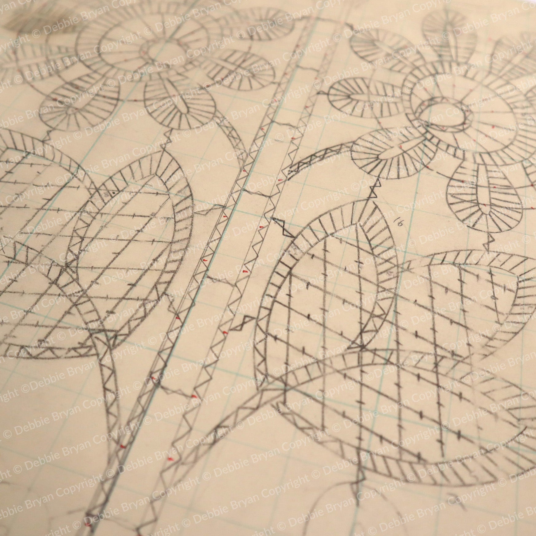 Nottingham Lace drawing featuring a leaf and flower pattern.