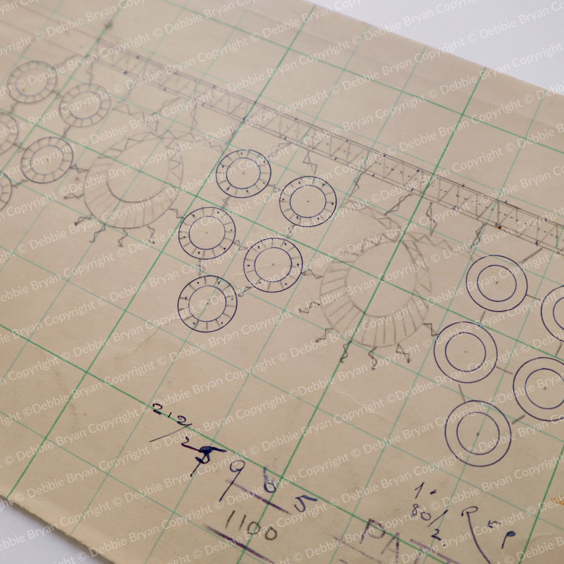 This is a hand illustrated design that may have notations, folds in the paper and markings that show industrial usage.
