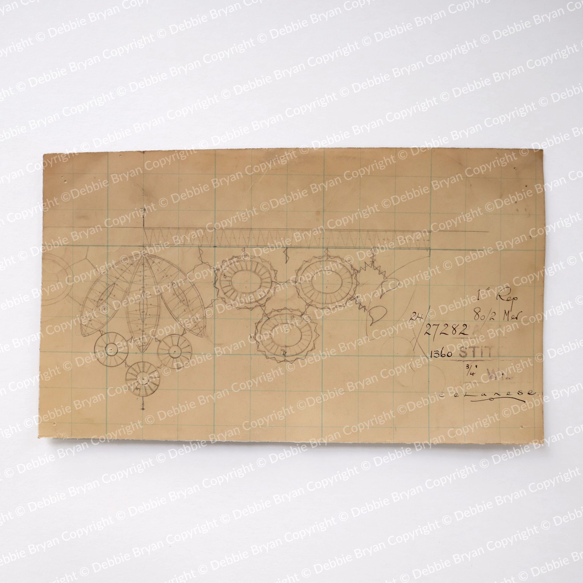 This is a hand illustrated design that may have notations, folds in the paper and markings that show industrial usage.