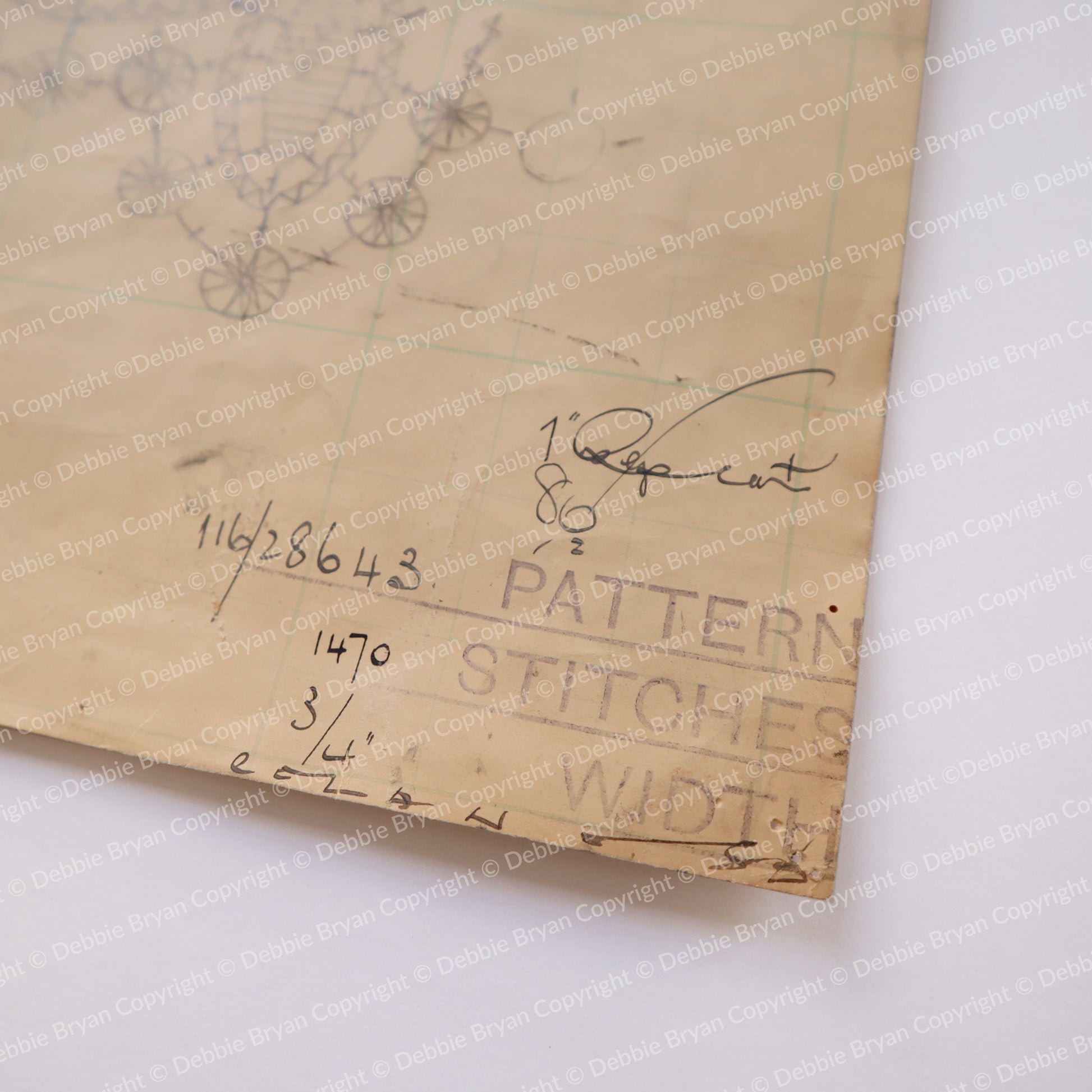 This is a hand illustrated design that may have notations, folds in the paper and markings that show industrial usage.