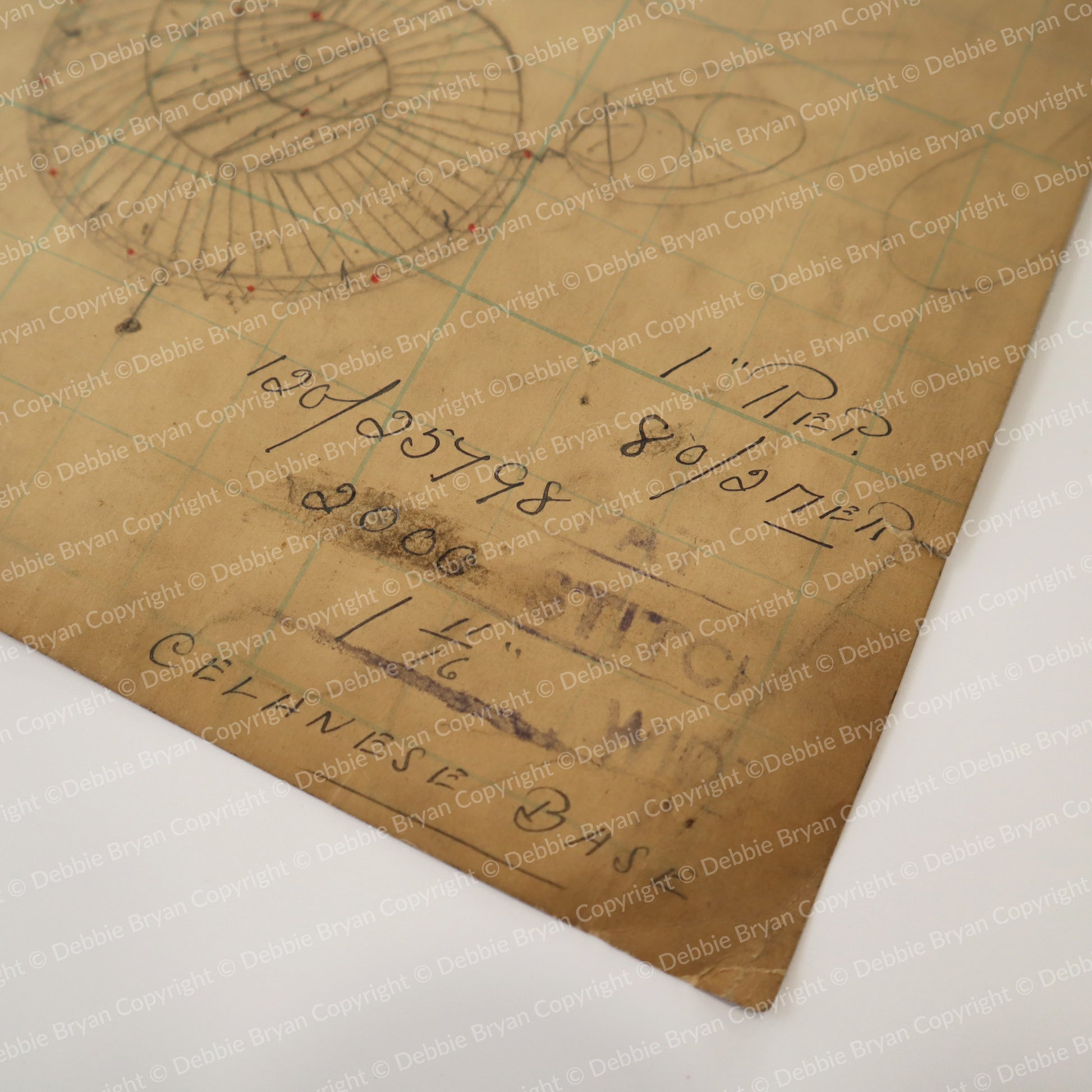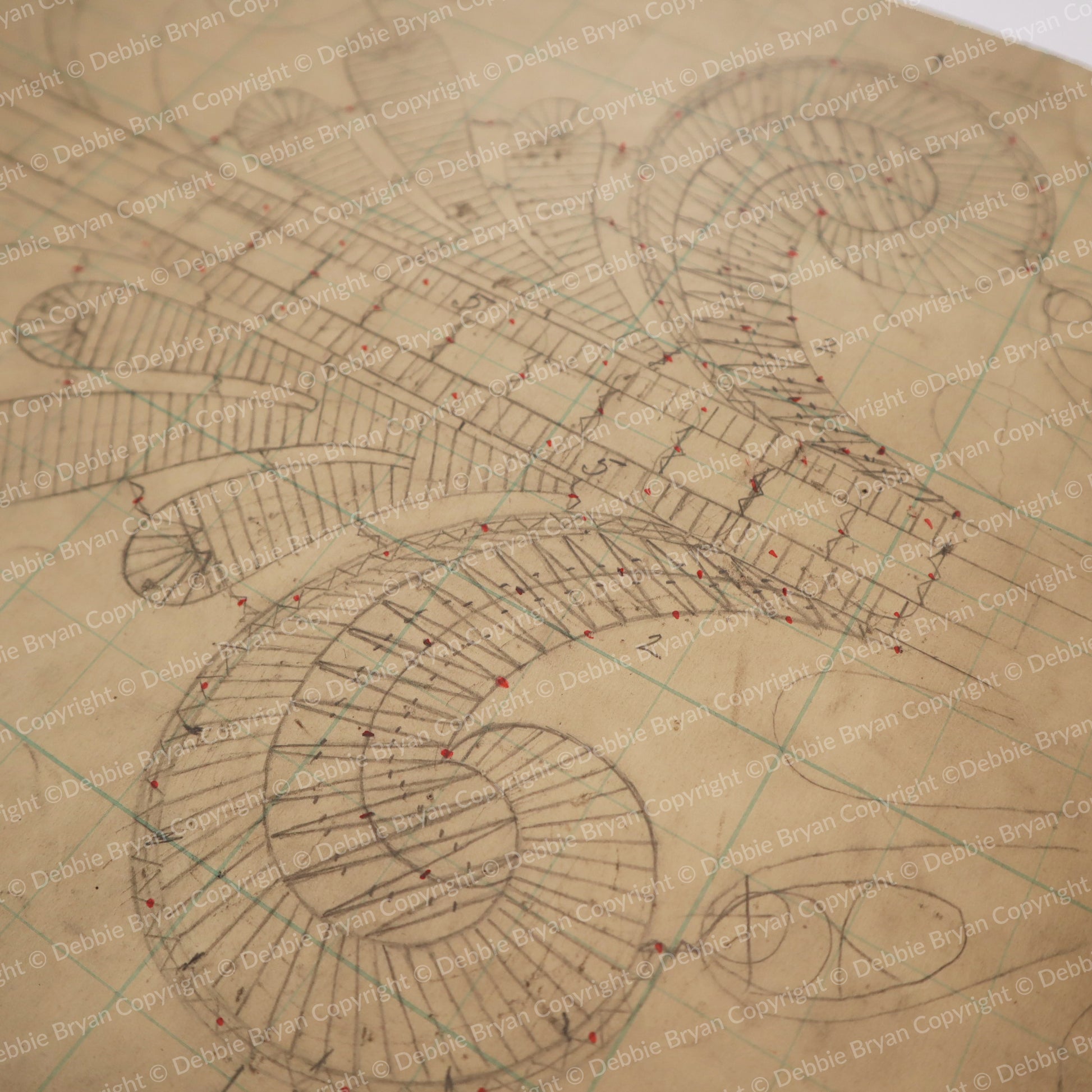 This is a hand illustrated design with notations, folds in the paper and markings that show industrial usage.