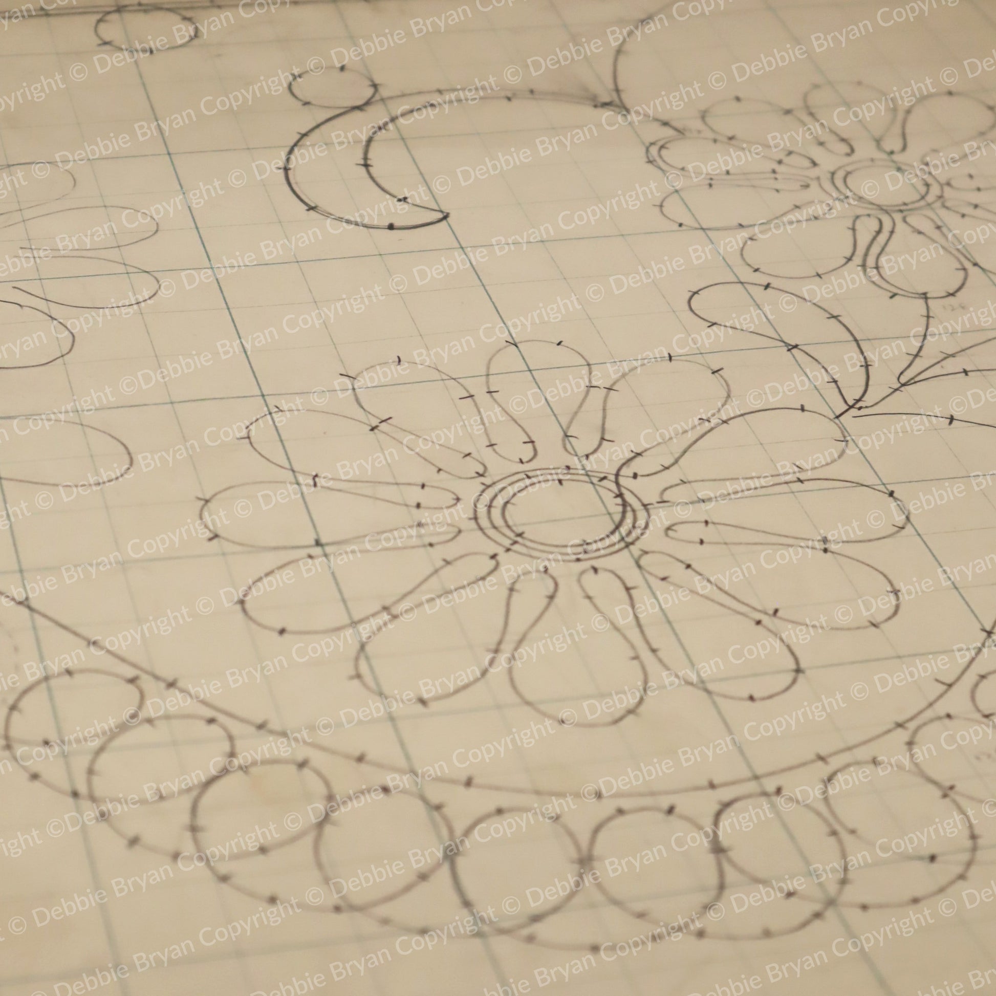 A unique leaf and flower design - an original Nottingham Lace drawing.,with notes from the technician.