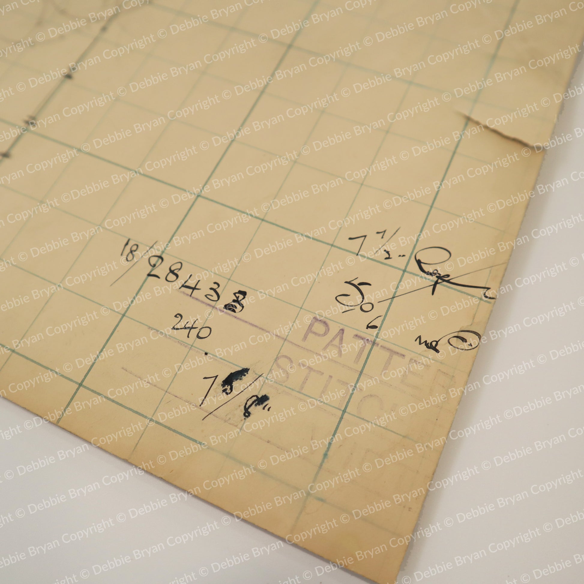 This is a hand illustrated design with notations, folds in the paper and markings that show industrial usage.