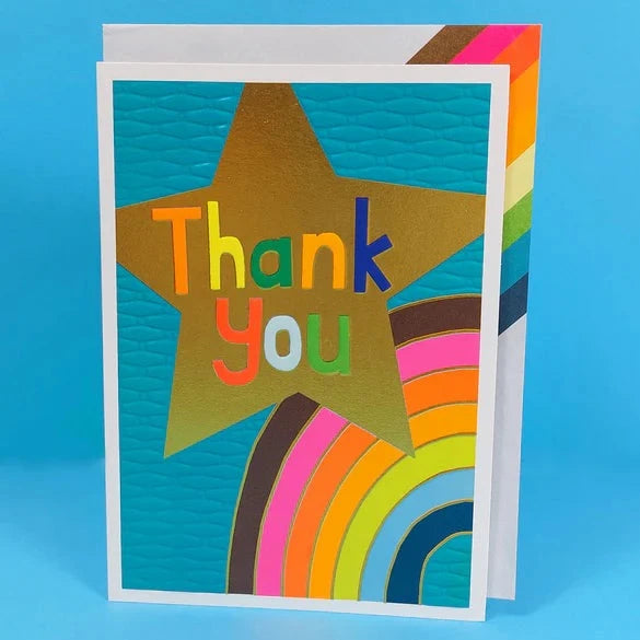 Blank inside and paired with a bright rainbow stripe envelope.