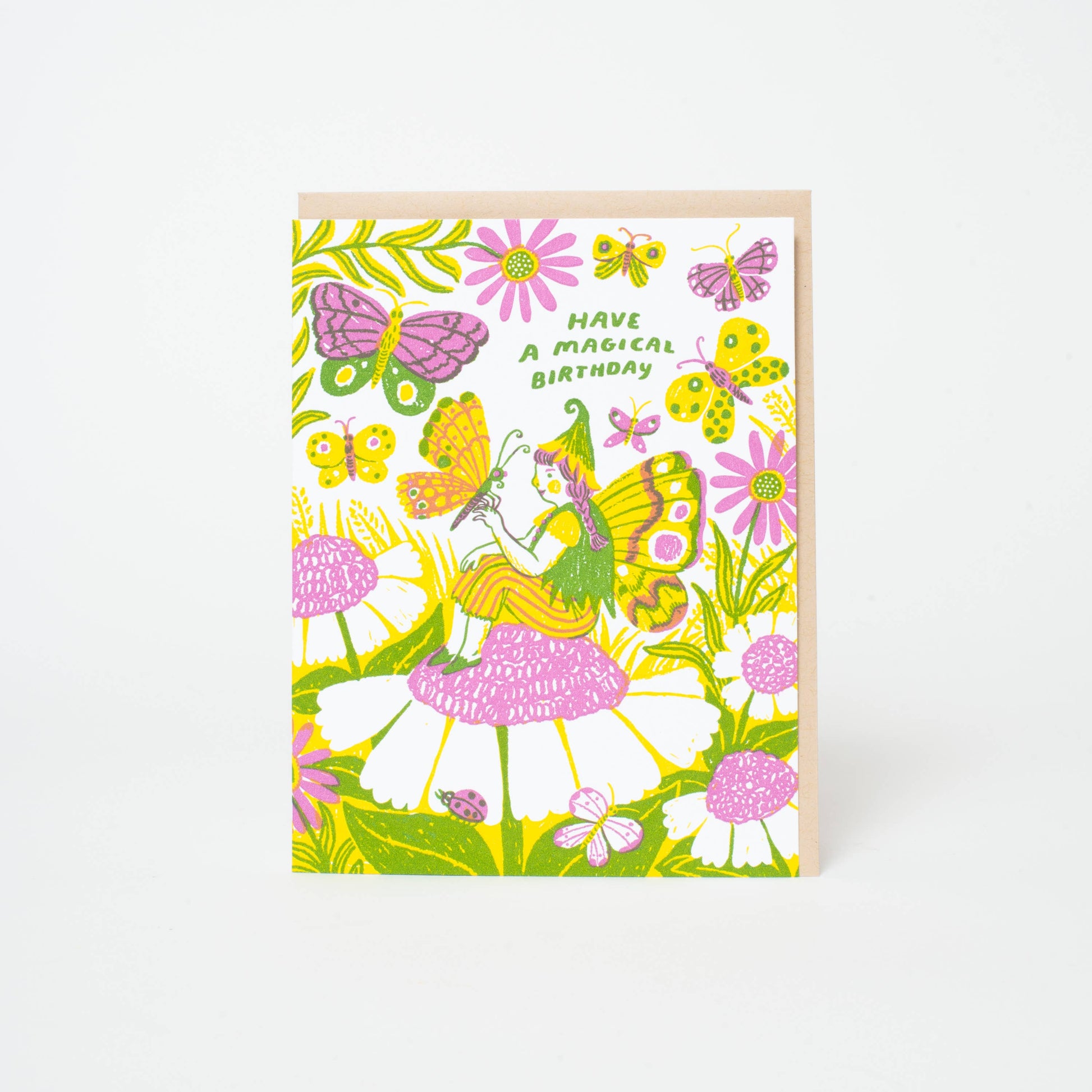 Itty bitty fairy birthday wishes from amongst a flower field.