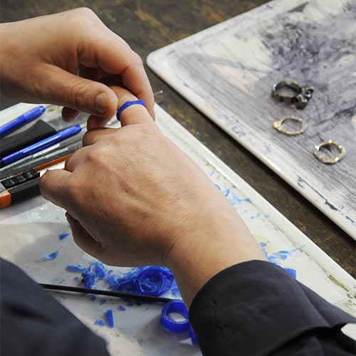 The design for this ring started with a pencil sketch and piece of jewellery wax, handcrafted in our design studio carefully removing the wax and creating unique marks. Taking several hours to make the wax replica of the ring which shows every mark and manipulation.
