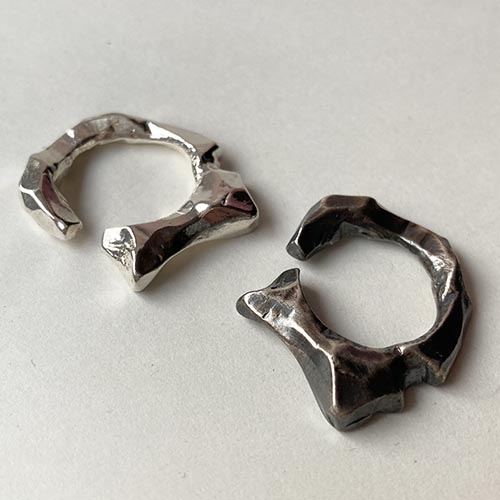 Once returned, this collection is available in stunning, polished silver or a distinctive oxidised silver, which is finished by hand by brushing the silver back with steel wool to showcase the underlying finish.