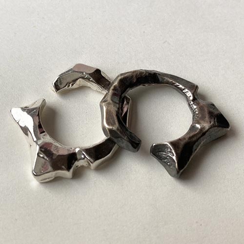Once returned, this collection is available in stunning, polished silver or a distinctive oxidised silver, which is finished by hand by brushing the silver back with steel wool to showcase the underlying finish.
