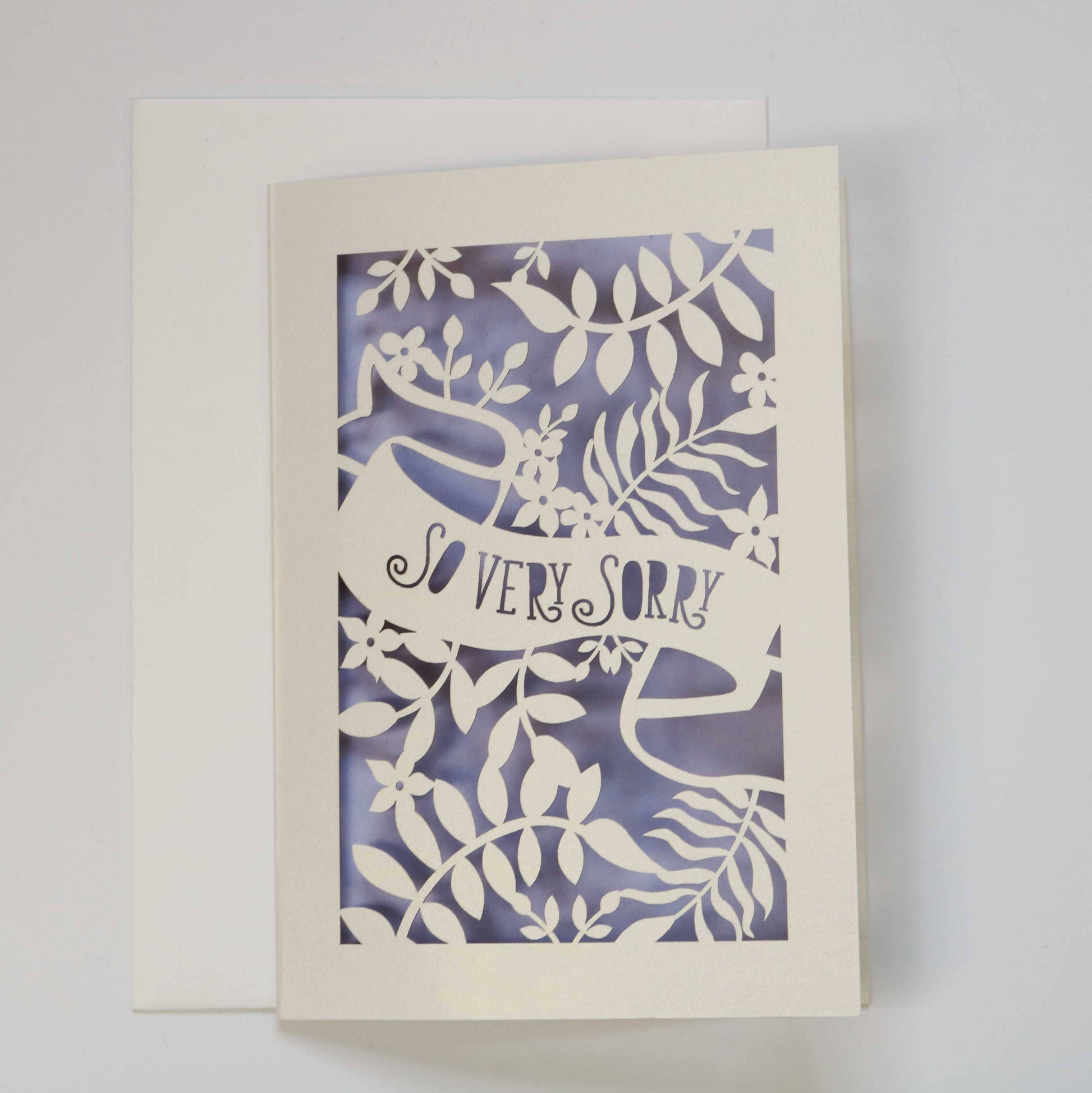 Laser cut from cream card and hand finished with a lilac paper insert.
