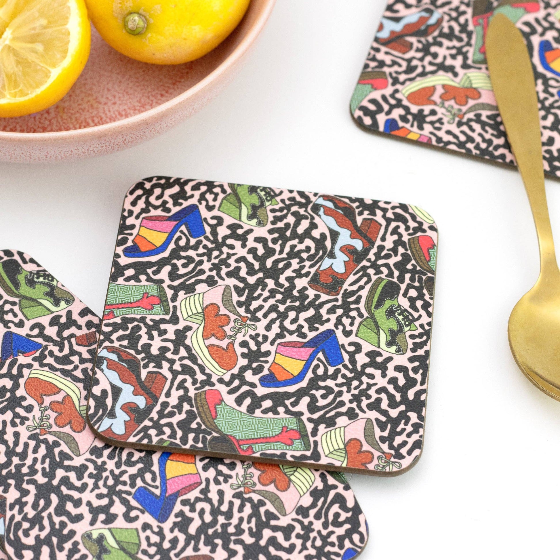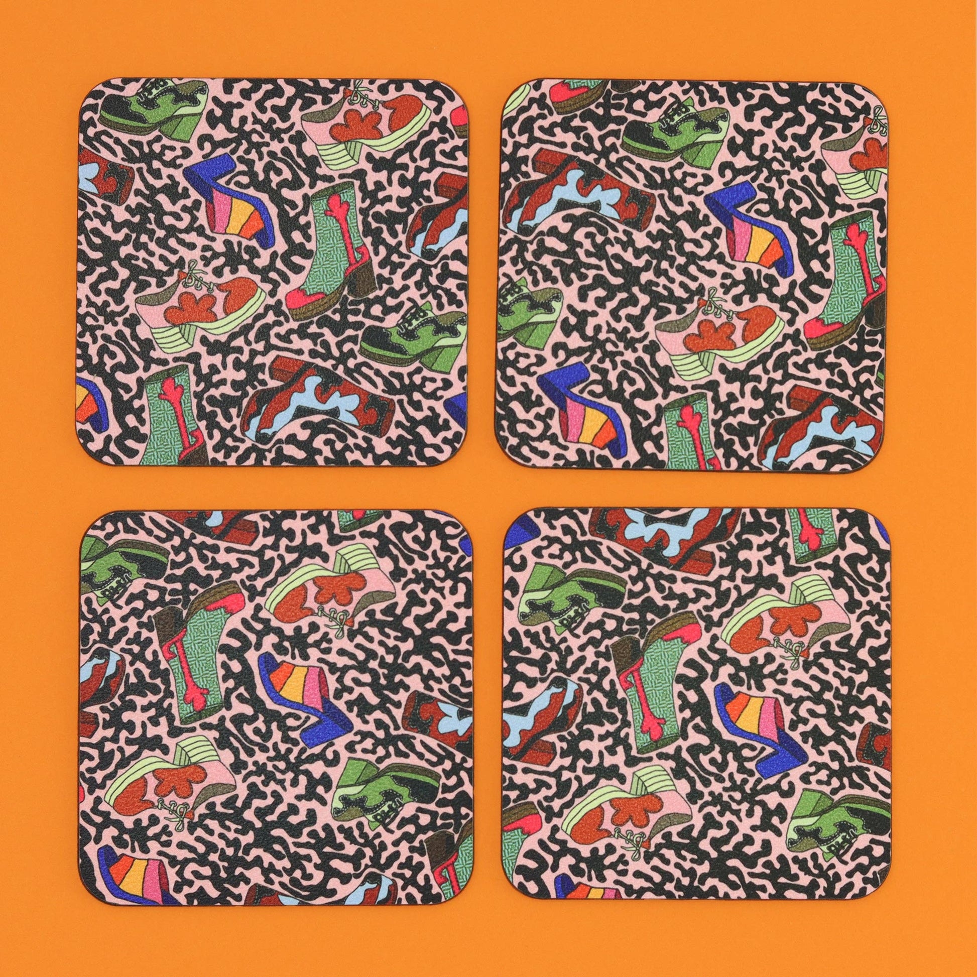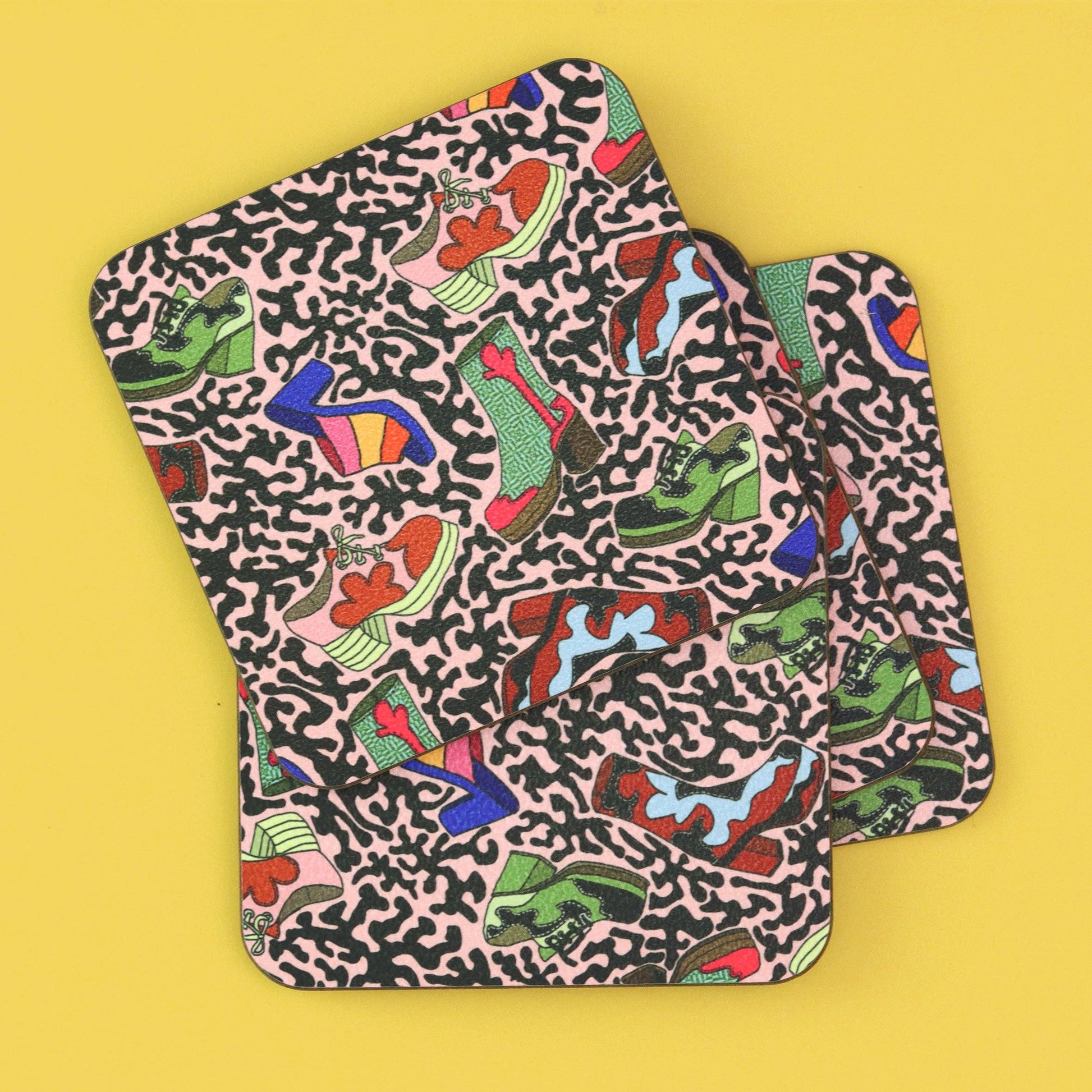 A coaster by The Neighbourhood Threat. Designed and printed from our studio in Salford. Textured, premium matt finish with a hardboard base. Scratch resistant Available as a set of 4. Size is 9cm x 9cm per coaster. Handwash ONLY, not dishwasher safe.